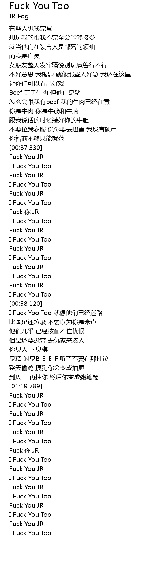 | [00:58.130] | I Fuck Yoo Too 就像他们已经迷路 |