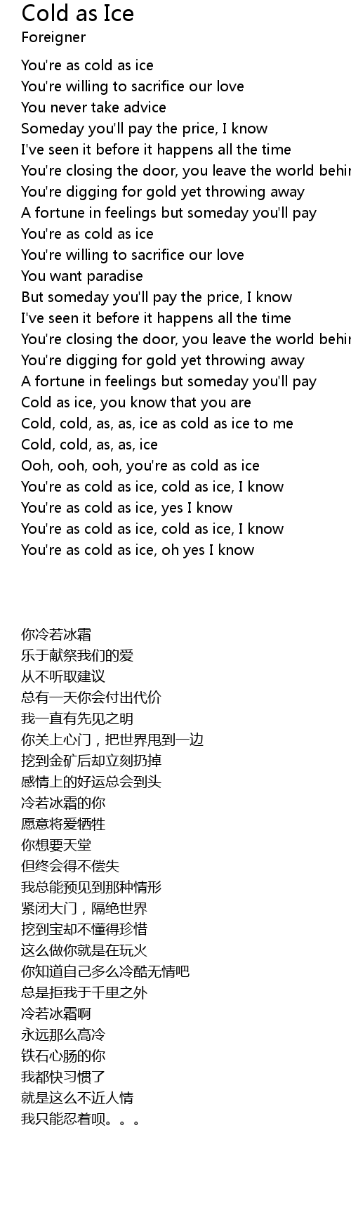 Cold, cold, as, as, ice as cold as ice to me |
