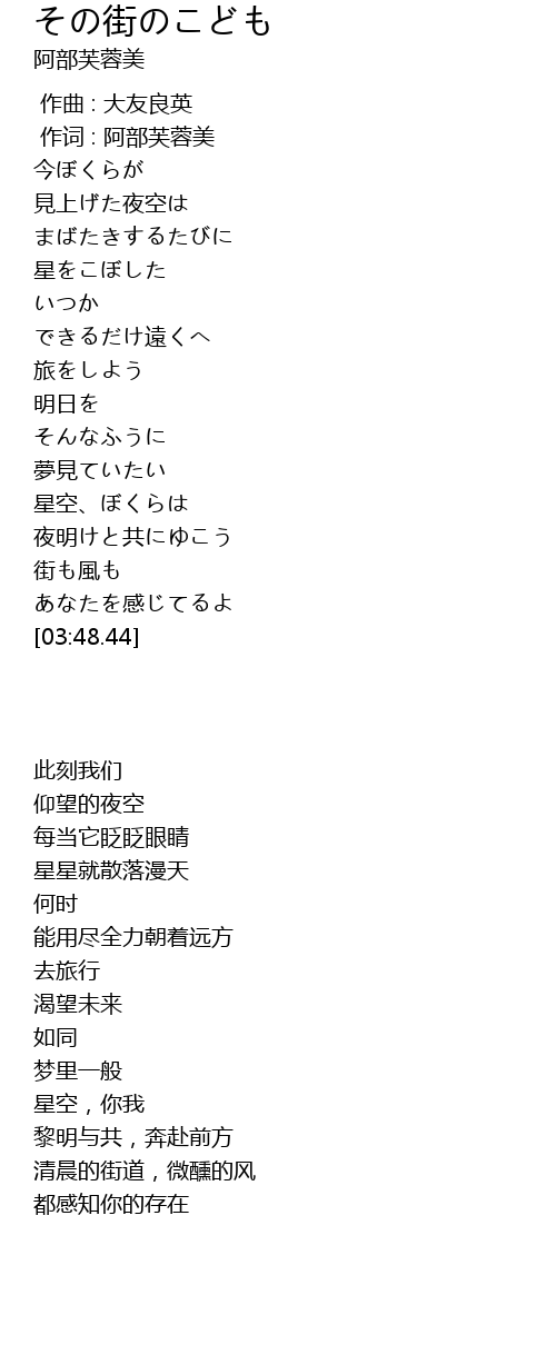 | [00:01.00] | 作词 : 阿部芙蓉美 |
