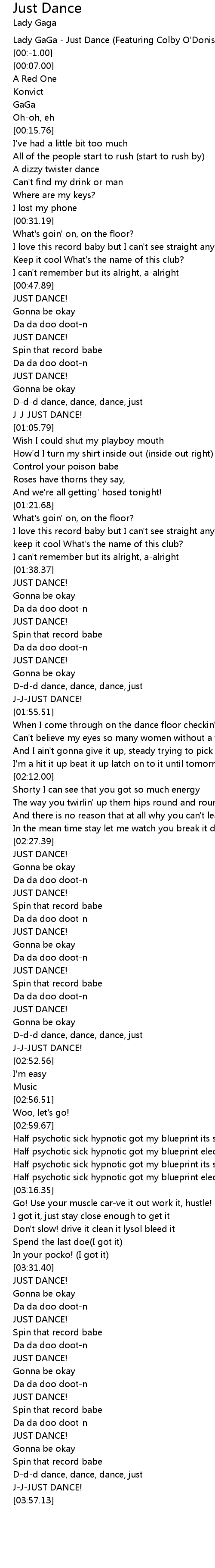 Lady GaGa - Just Dance (Featuring Colby O'Donis) |