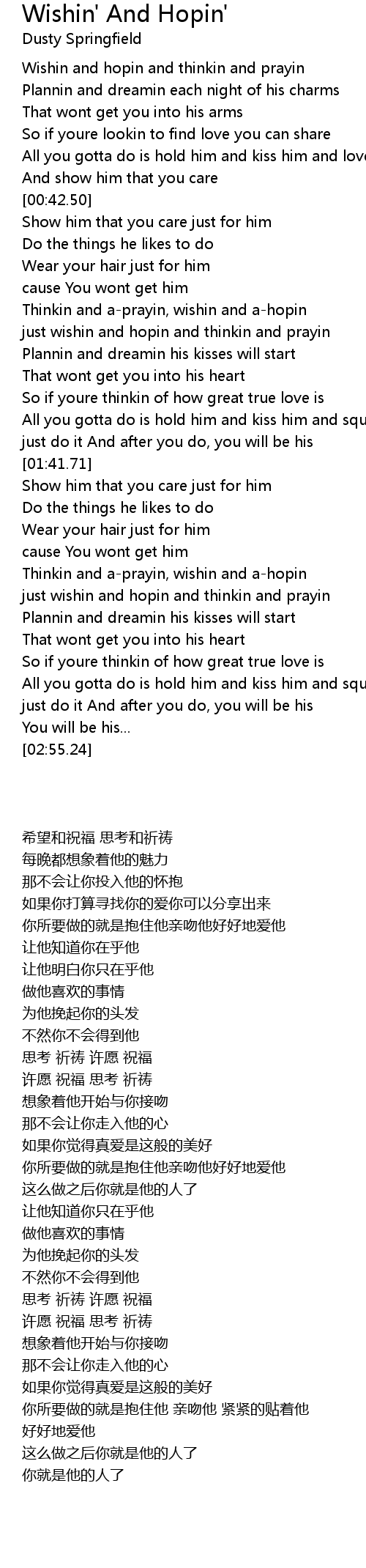 Wishin and hopin and thinkin and prayin |
