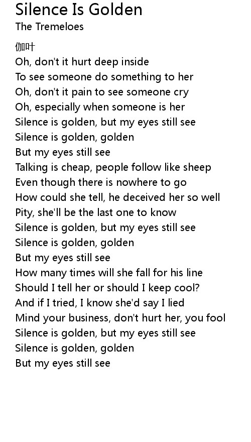 | [00:52.85] | Silence is golden, golden |