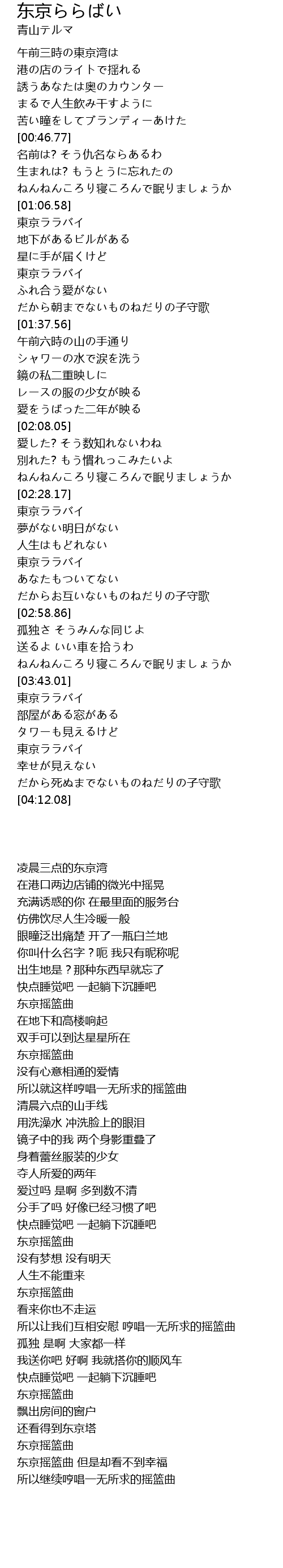 | [03:55.74] | 東京ララバイ |
