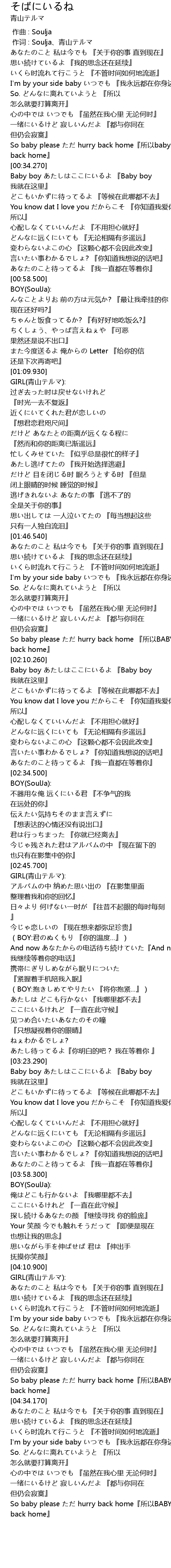 | [03:34.780] | Baby boy あたしはここにいるよ 『Baby boy 我就在这里』 |