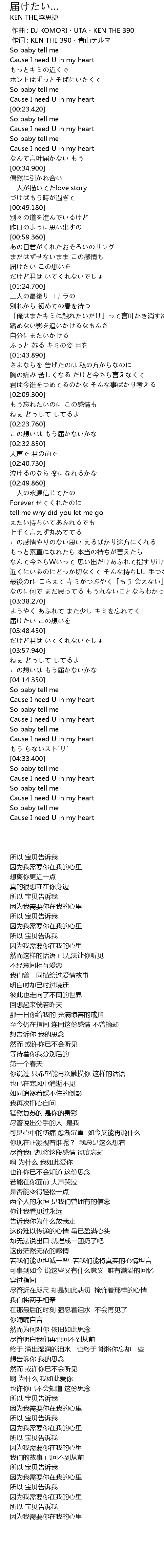 | [03:58.760] | ねぇ どうして してるよ |