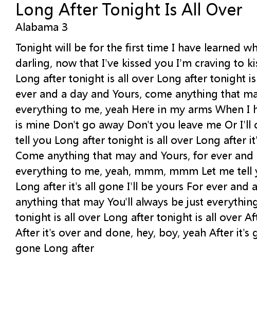 Tonight will be for the first time I have learned what my lips are for And darling, now that I've kissed you I'm craving to kiss you more Let me tell you Long after tonight is all over Long after tonight is all gone I'll be yours For ever and a day and Yours, come anything that may You'll always be just everything to me, yeah Here in my arms When I hold you I can feel that the world is mine Don't go away Don't you leave me Or I'll cry 'til the end of time Let me tell you Long after tonight is all over Long after it's all gone I'll be yours Come anything that may and Yours, for ever and a day You'll always be just everything to me, yeah, mmm, mmm Let me tell you Long after tonight is all over Long after it's all gone I'll be yours For ever and a day and Yours, come anything that may You'll always be just everything to me, yeah, Long after tonight is all over Long after tonight is all over After it's over and done After it's over and done, hey, boy, yeah After it's gone, hey, yeah After it's gone Long after |