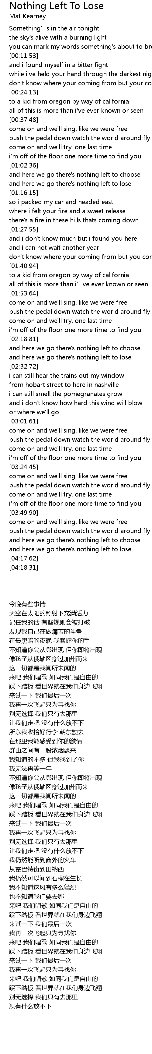| [04:09.55] | and here we go there' s nothing left to lose |