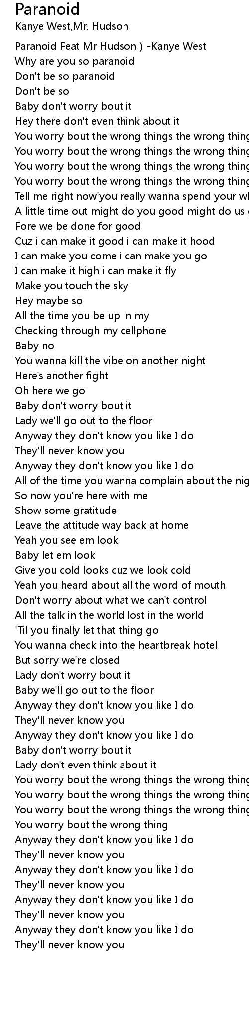 | [00:00.190] | Paranoid Feat Mr Hudson)-Kanye West |