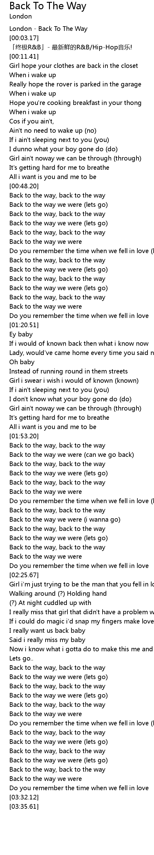 | [01:58.16] | Back to the way, back to the way |