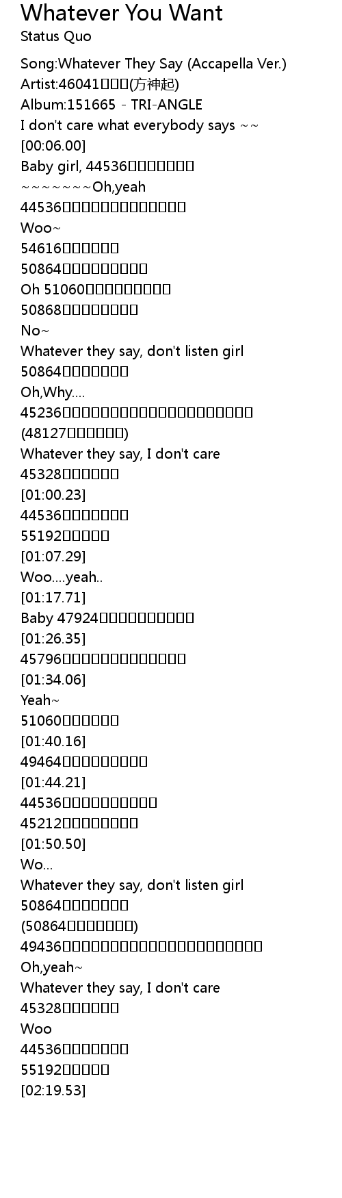 | [00:00.00] | Song:Whatever They Say (Accapella Ver.) |