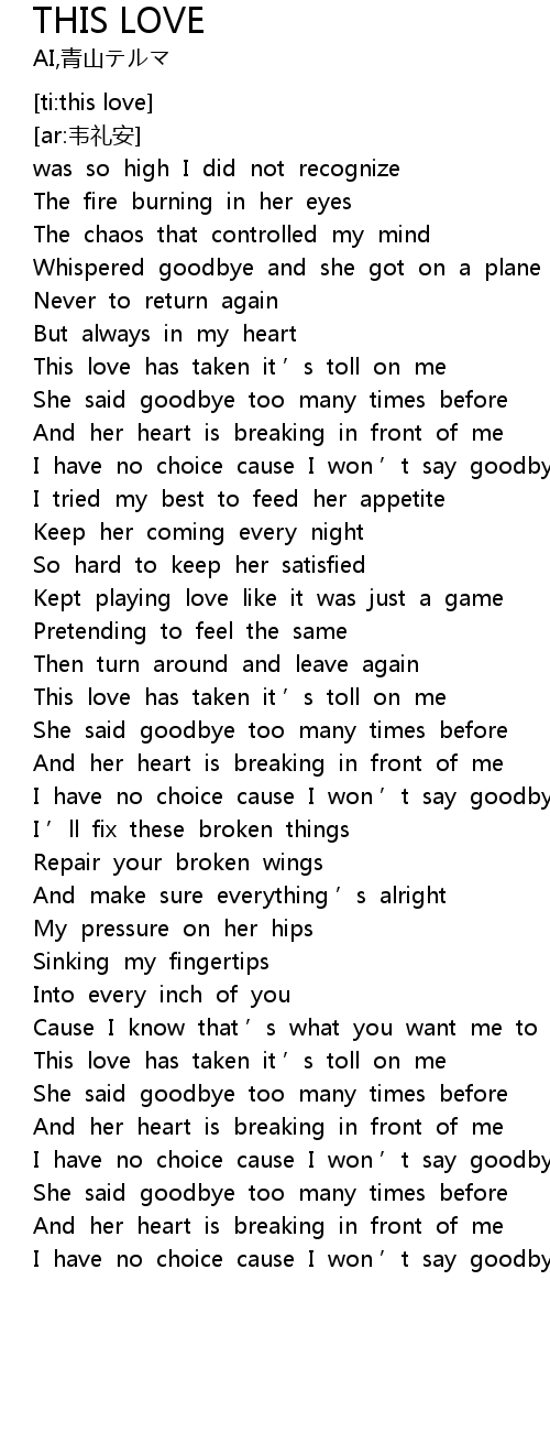 | [00:56.572] | I have no choice cause I won ’t say goodbye anymore |