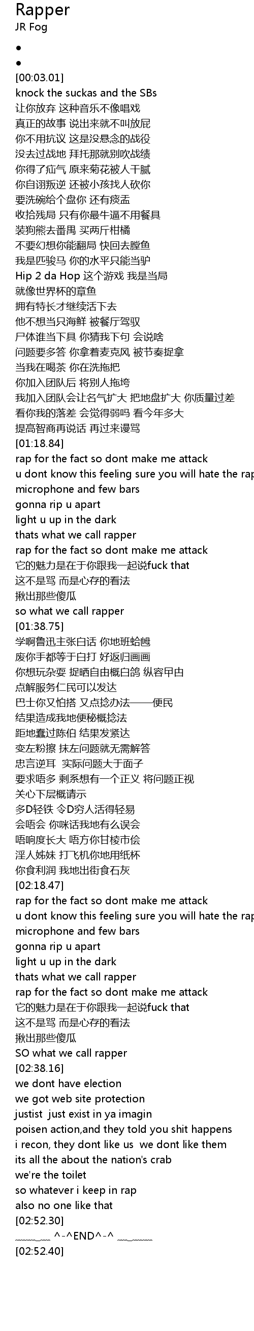 | [02:20.68] | u dont know this feeling sure you will hate the rap |