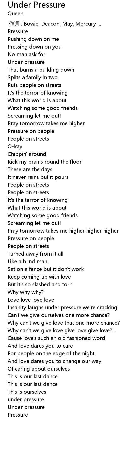 | [00:00.00] | 作词 : Bowie, Deacon, May, Mercury ... |
