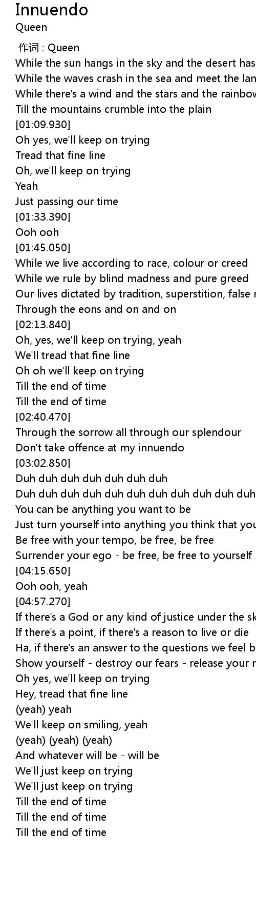 | [02:14.340] | Oh, yes, we' ll keep on trying, yeah |