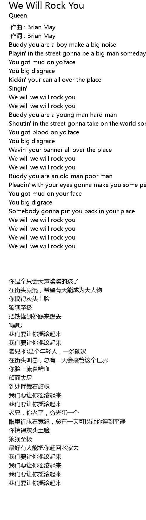 | [01:11.500] | We will we will rock you |