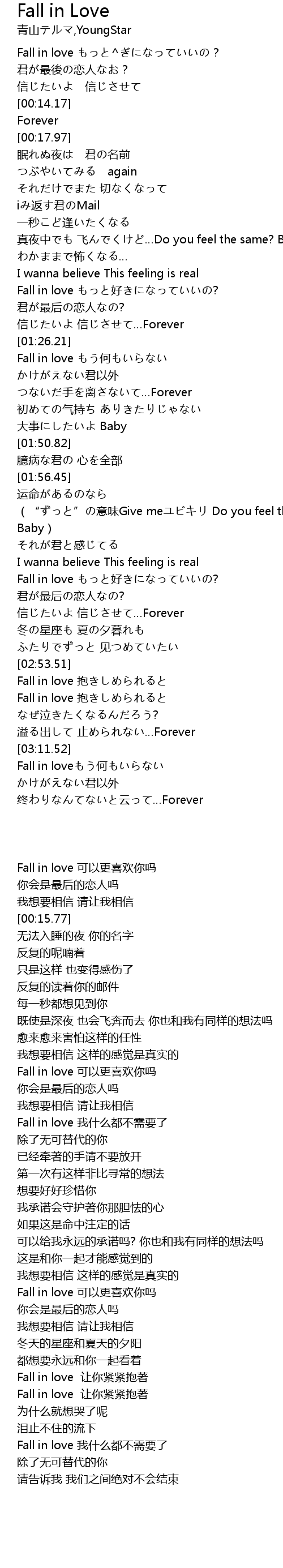 | [02:18.30] | Fall in love もっと好きになっていいの? |