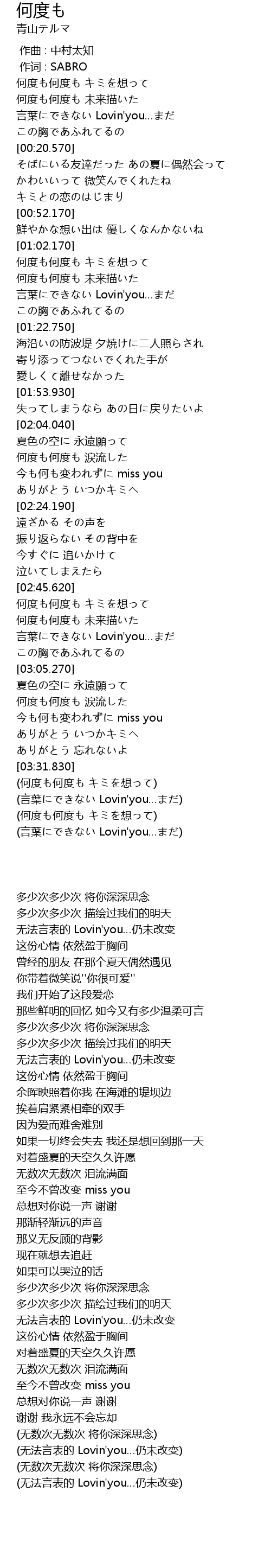 | [02:55.880] | 言葉にできない Lovin'you…まだ |