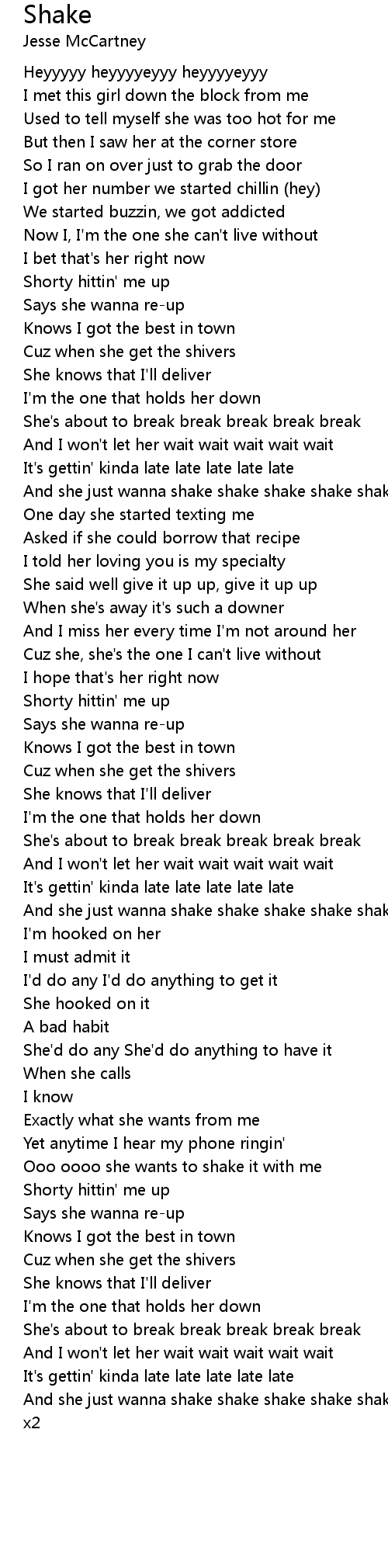 And she just wanna shake shake shake shake shake |