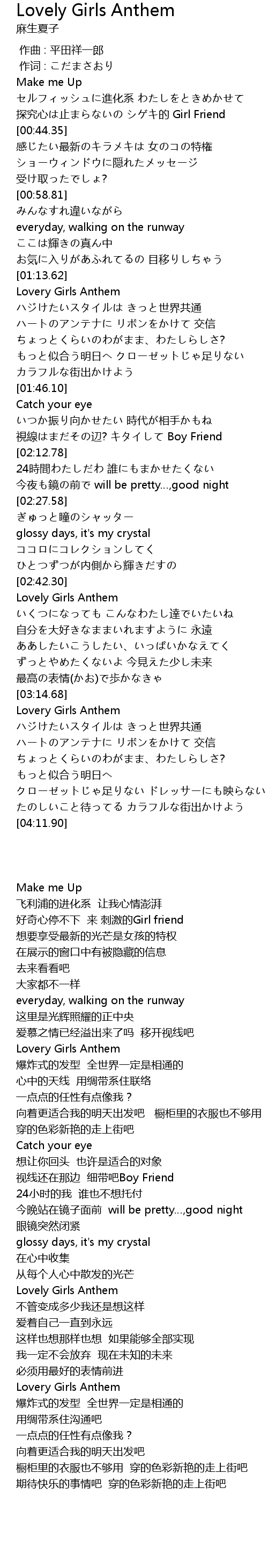 | [00:44.89] | 感じたい最新のキラメキは 女のコの特権 |