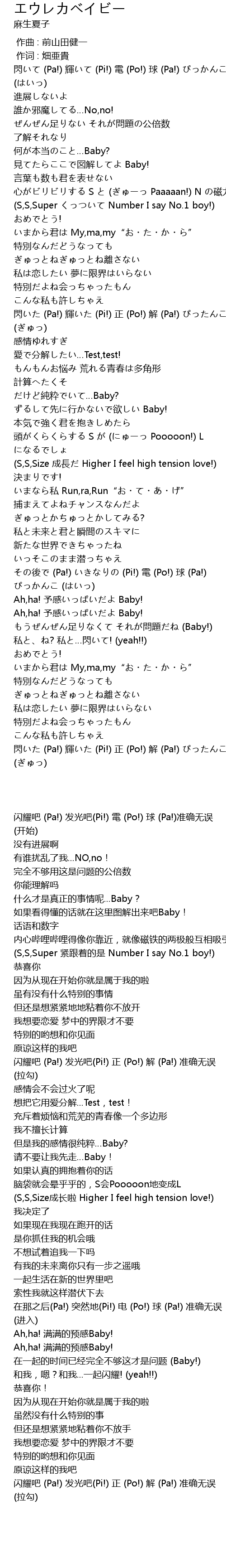 | [02:12.627] | (S,S,Size 成長だ Higher I feel high tension love!) |