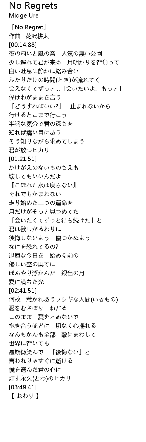 | [00:01.88] | 「No Regret」 |
