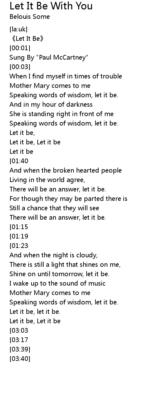 | [02:13][01:15] | Let it be, let it be. |