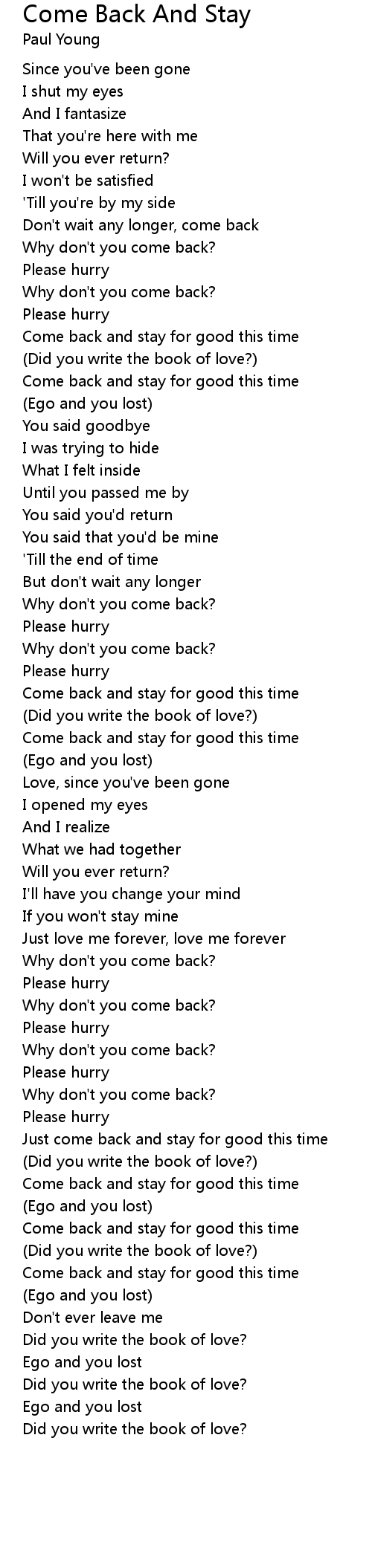 Come back and stay for good this time |