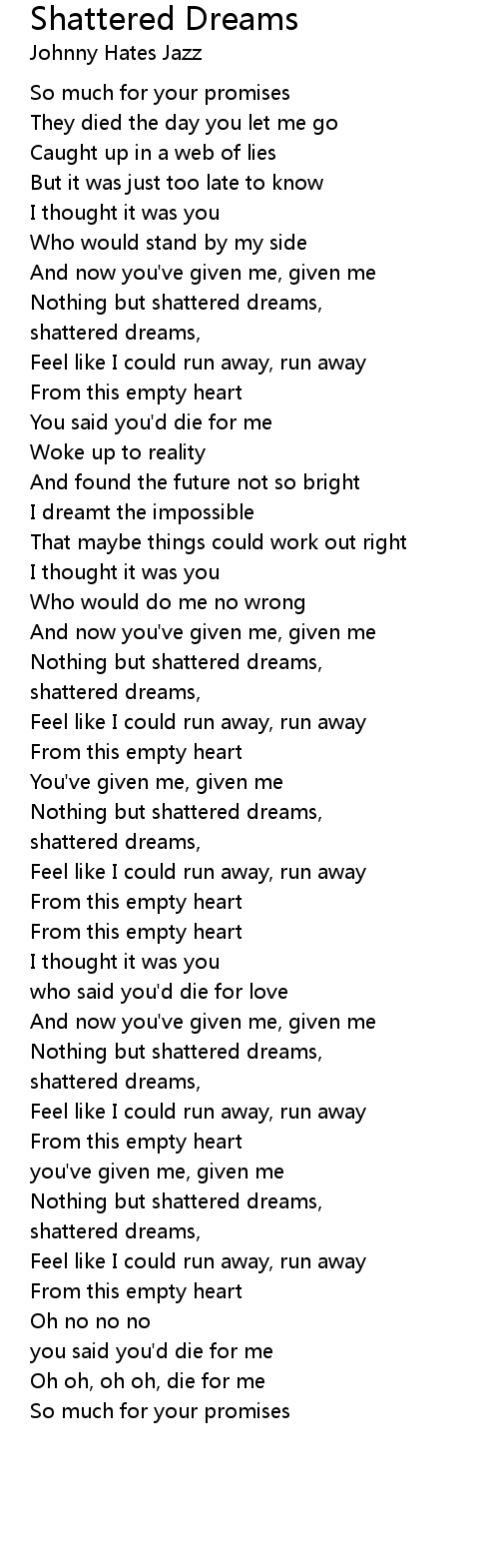 shattered dreams, |