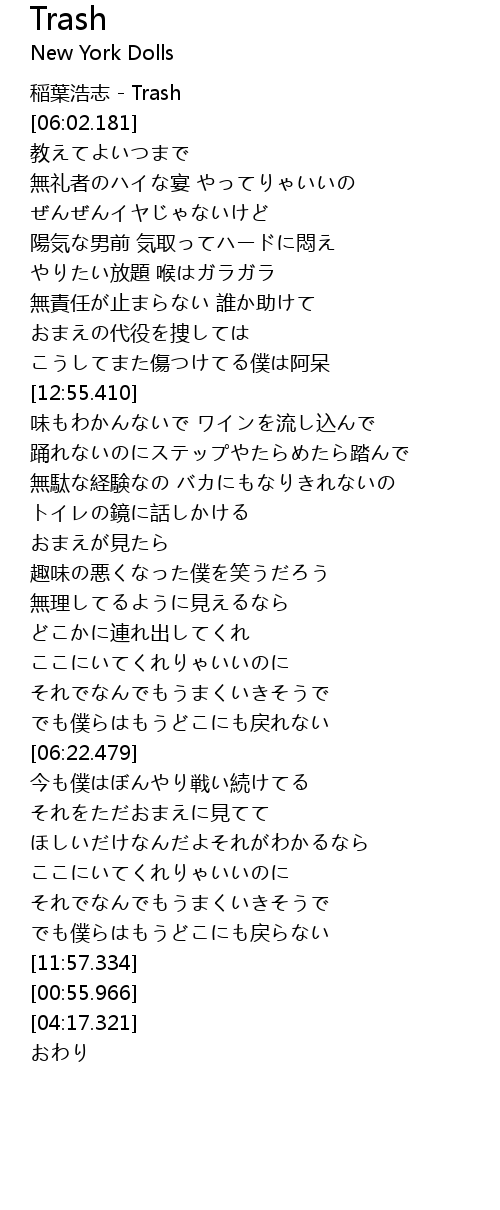 | [04:45.398] | 無駄な経験なの バカにもなりきれないの |