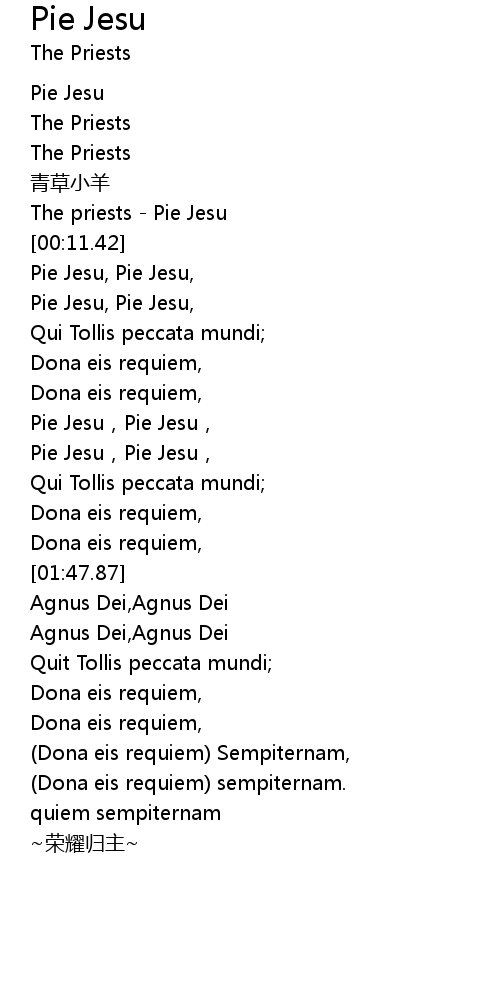 | [00:00.40] | The priests Pie Jesu |