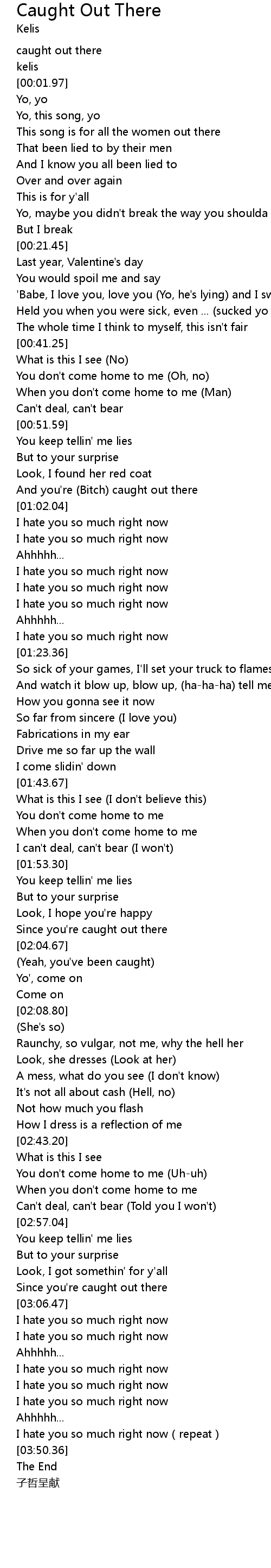 | [00:59.51] | And you're (Bitch) caught out there |