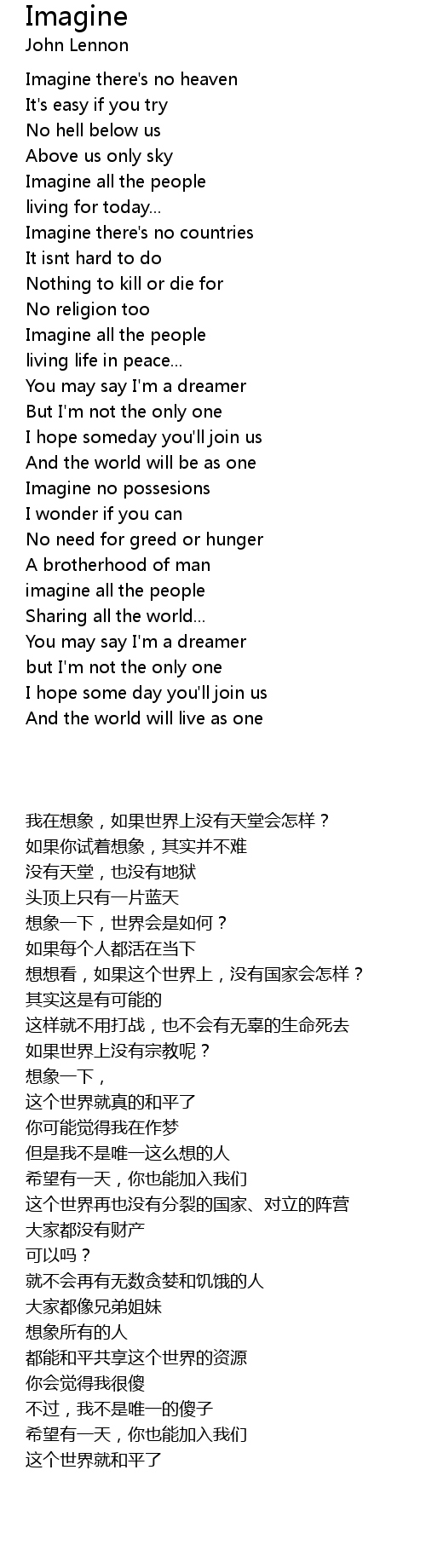 Imagine no possesions |