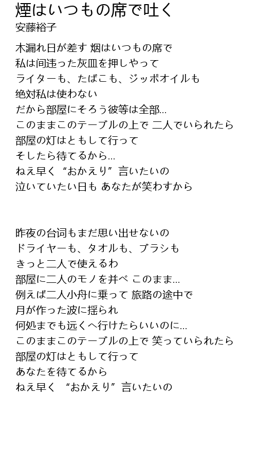 | Song | 煙はいつもの席で吐く |