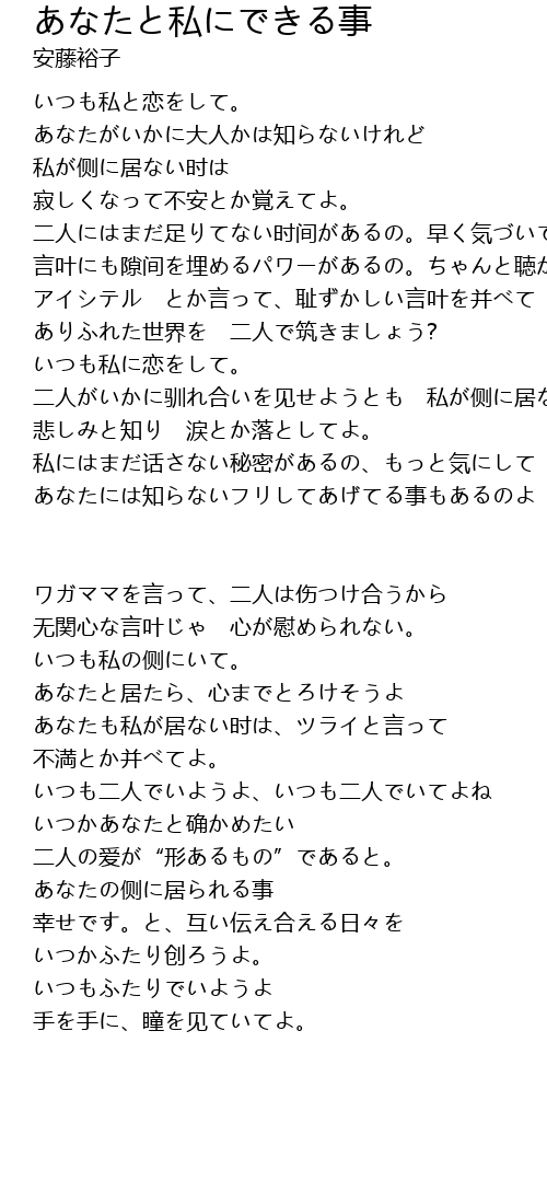 | Song | あなたと私にできる事 |