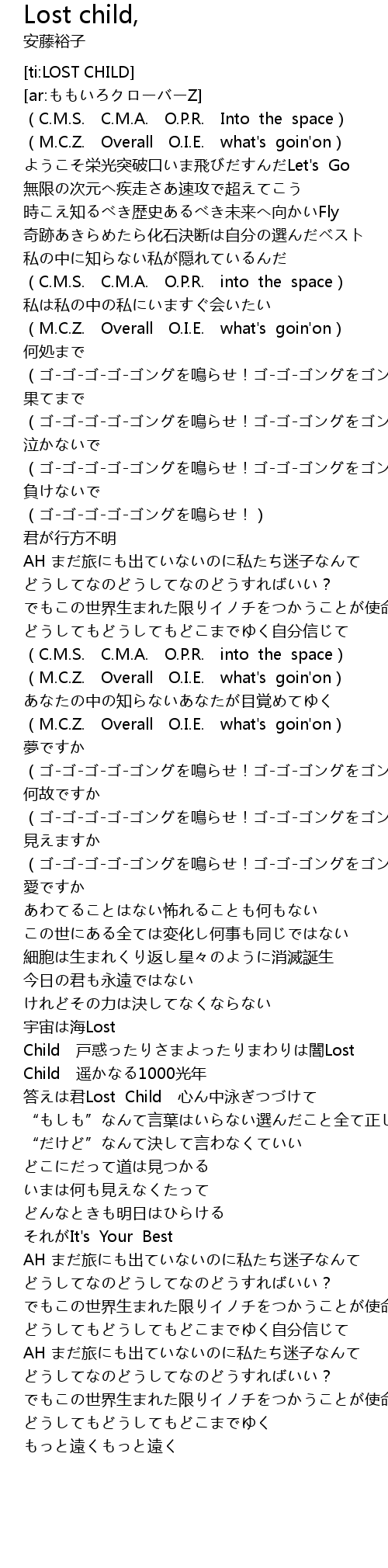 | [03:01.81] | yǔ zhòu hǎi Lost Child hù huò àn Lost Child yáo 1000 guāng nián |