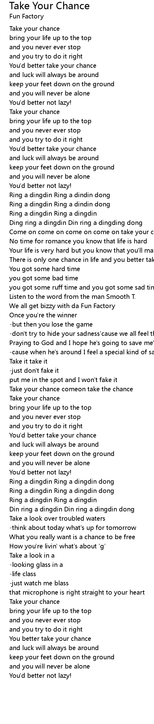 Come on come on come on come on take your chance |