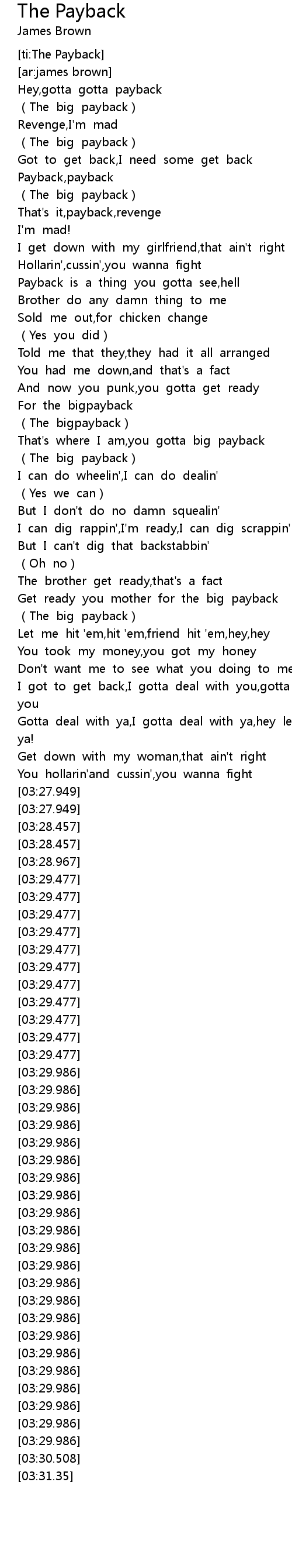 | [01:39.69] | That' s where I am, you gotta big payback |