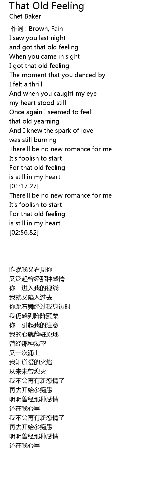 | [02:48.71] | For that old feeling |