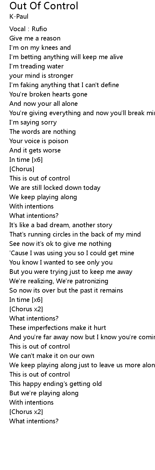 | Song | Out Of Control |