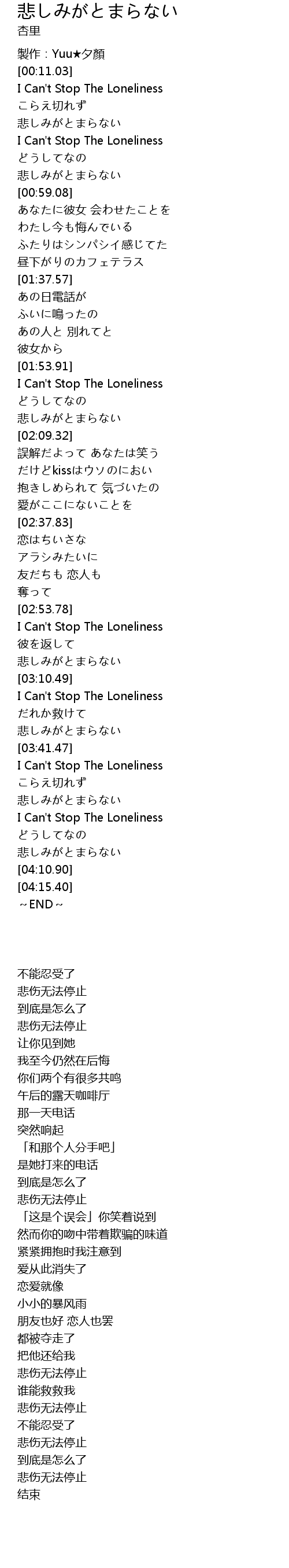 | [03:56.73] | I Can' t Stop The Loneliness |