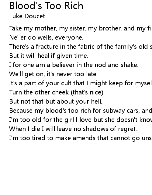 Because my blood's too rich for subway cars, and I'm too poor for a cab. |