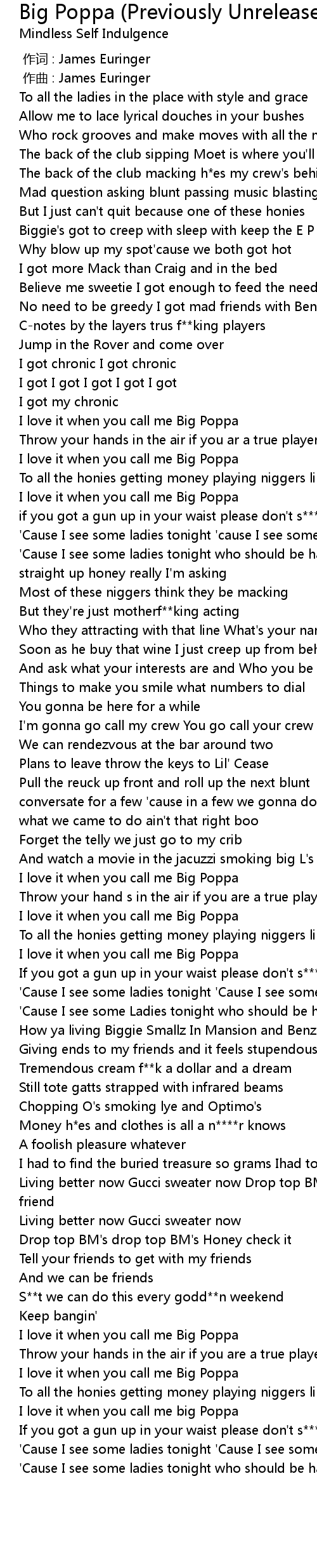 | [02:24.660] | How ya living Biggie Smallz In Mansion and Benz's |