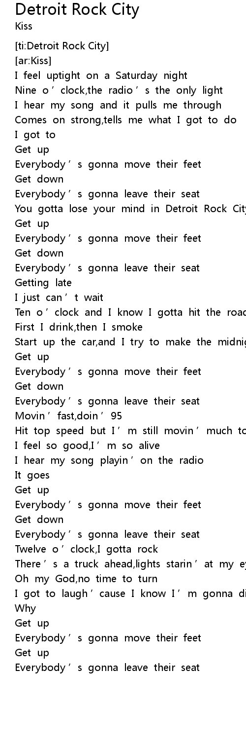 | [01:08.93] | You gotta lose your mind in Detroit Rock City |