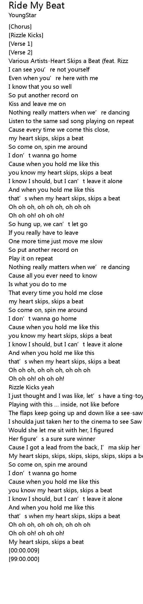 | [00:58.17] | you know my heart skips, skips a beat |