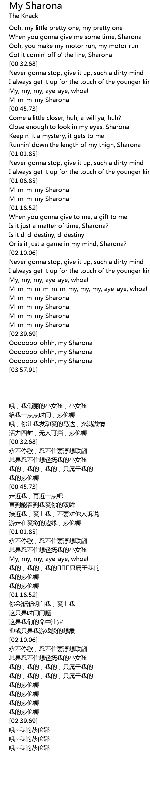 Ooooooo-ohhh, my Sharona |