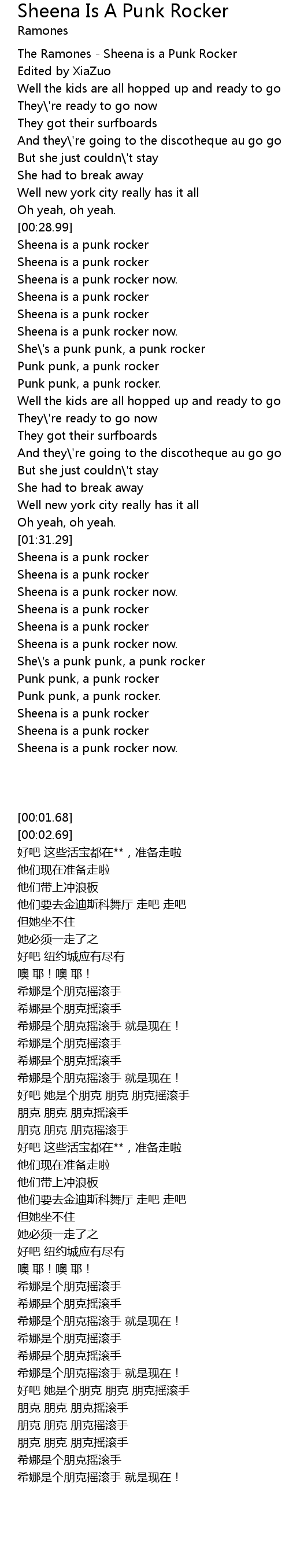 [00:01.68] The Ramones - Sheena is a Punk Rocker