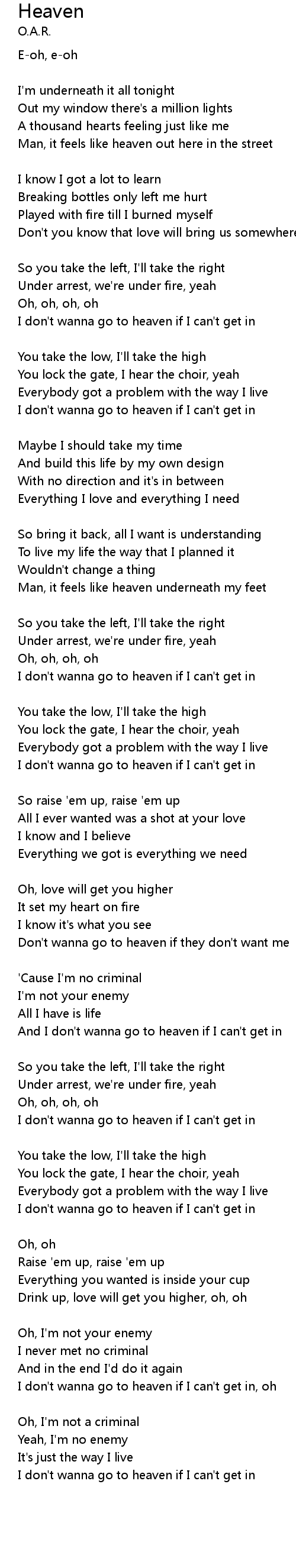 I don't wanna go to heaven if I can't get in, oh |