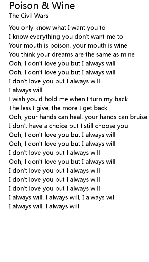 Your mouth is poison, your mouth is wine |