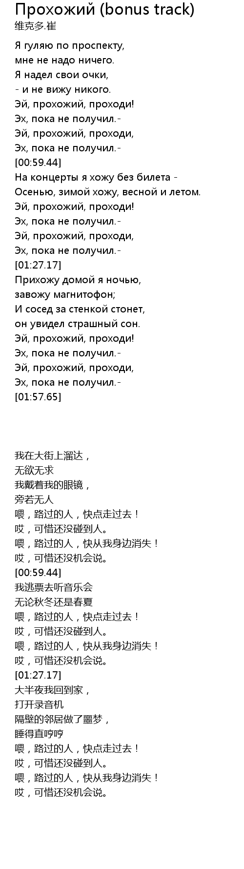 | [00:54.70] | Эй, пpохожий, пpоходи, |