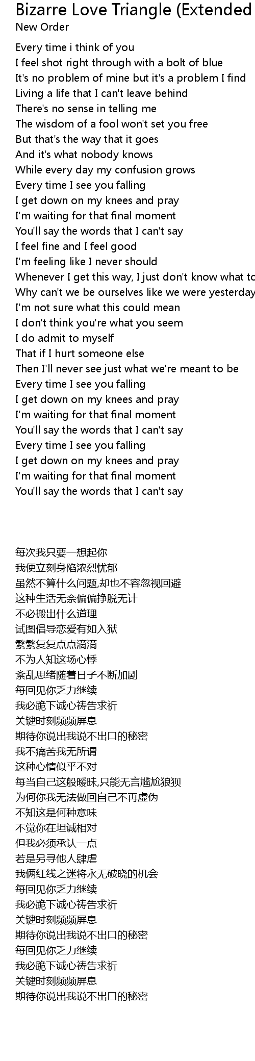 Bizarre Love Triangle (Extended Dance Mix) Lyrics